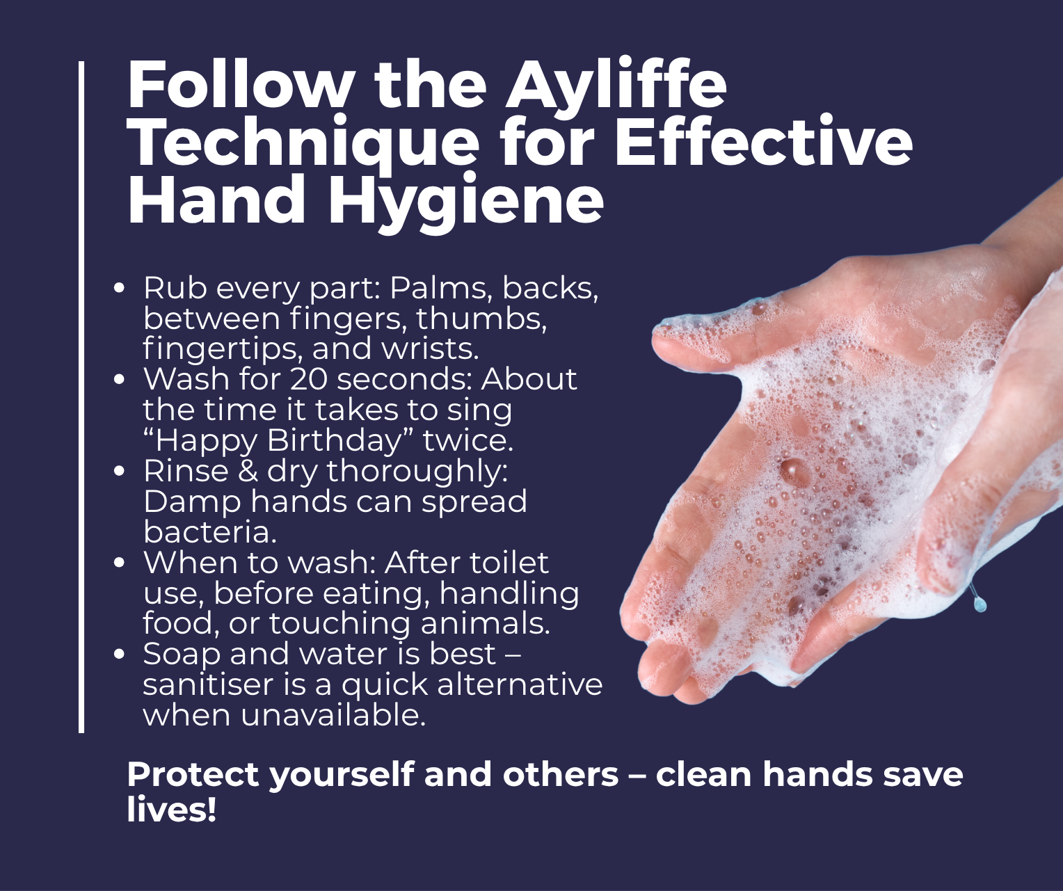 Following the Ayliffe technique not only protects you but also safeguards colleagues, clients, and the wider community. Making it a standard in offices, schools, healthcare, and industrial settings reduces infection risks.